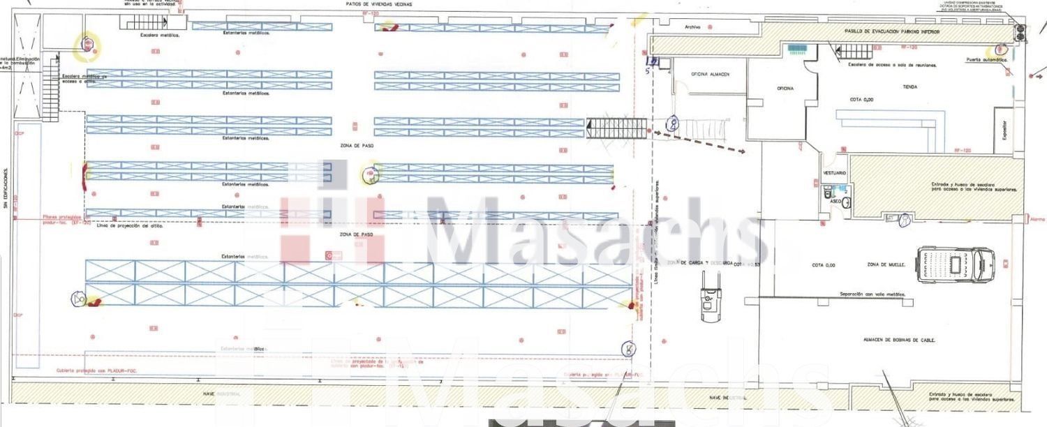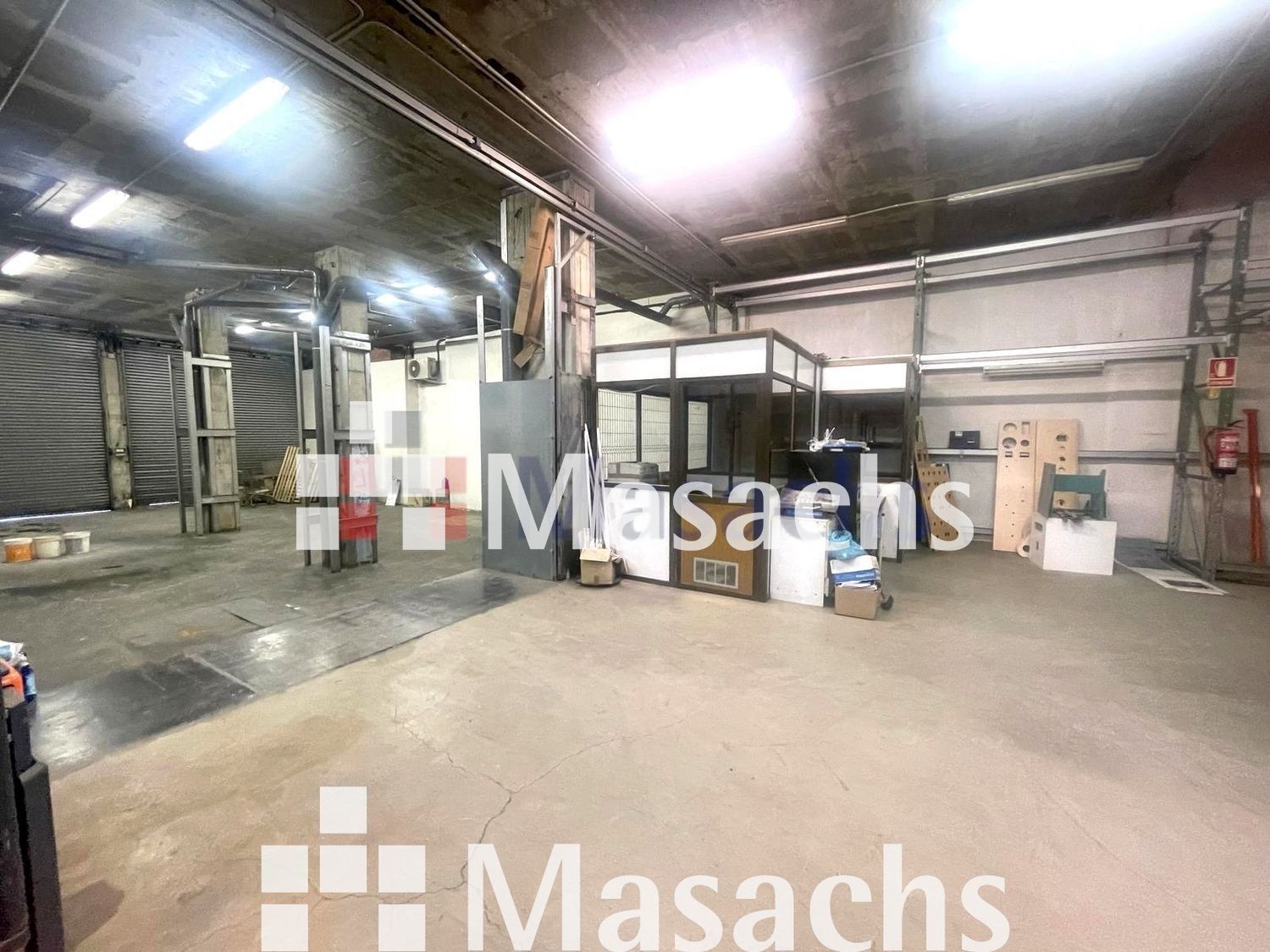Disposa d’oficina, sala de reunions, vestuaris, lavabo, portes grans d´entrada per camions i oficines. També té els subministraments d’aigua i llum donats d’alta. És ideal per magatzem.