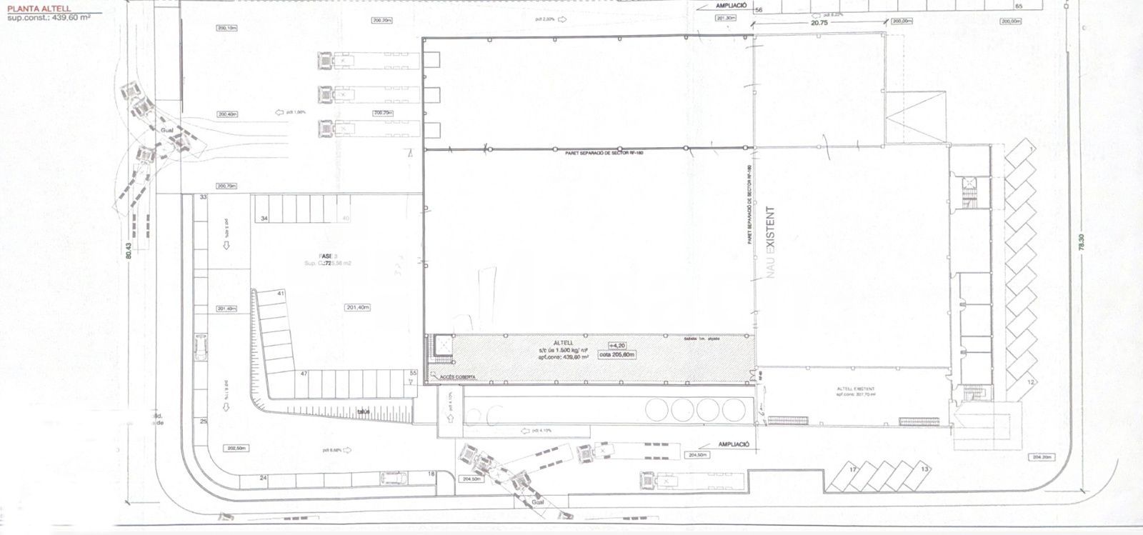 – 1 moll de càrrega a façana i 3 molls de càrrega al pati posterior.
