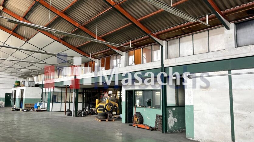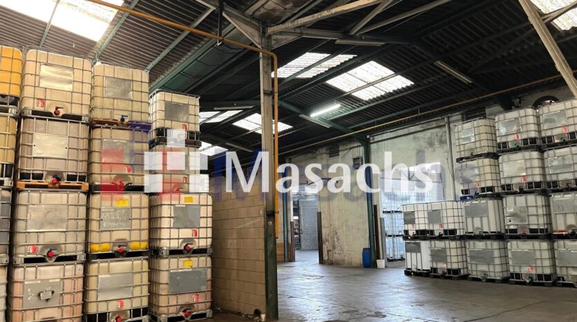 L’estructura metàl·lica amb coberta de fibrocement i paviments de formigó assegura durabilitat, mentre que el fals sostre i les àmplies finestres proporcionen un espai de treball lluminós i eficient. També disposa de dues portes TIR per a l’accés de vehicles industrials, a més d’aseos i vestidors completament condicionats.