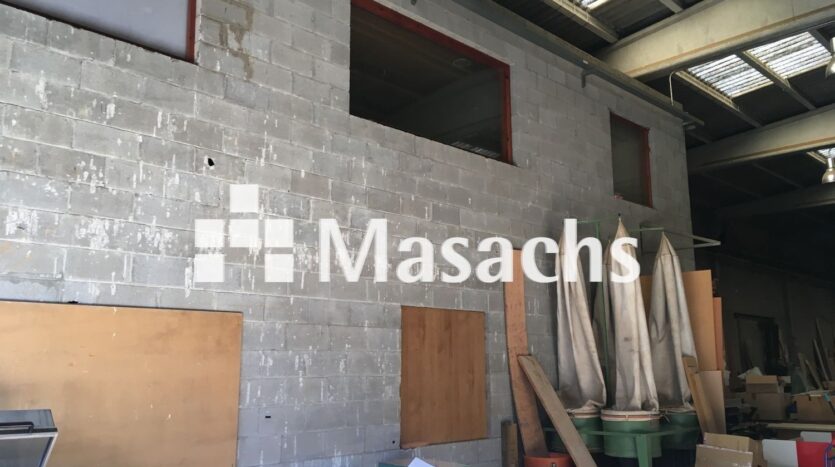 Nau industrial de 550 m² en planta totalment diàfana amb una alçada lliure de 7,5 metres. També disposa de 100 m² destinats a oficines i vestidors. La nau ja disposa de tallafocs i BIE’s. Té un pati frontal de 150 m².