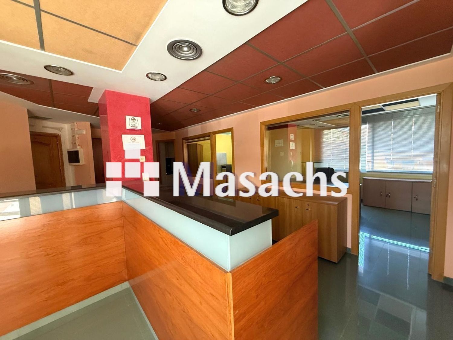 – Distribució: Vestíbul d’entrada, 2 despatxos amplis, sala de reunions, office i bany complet.
