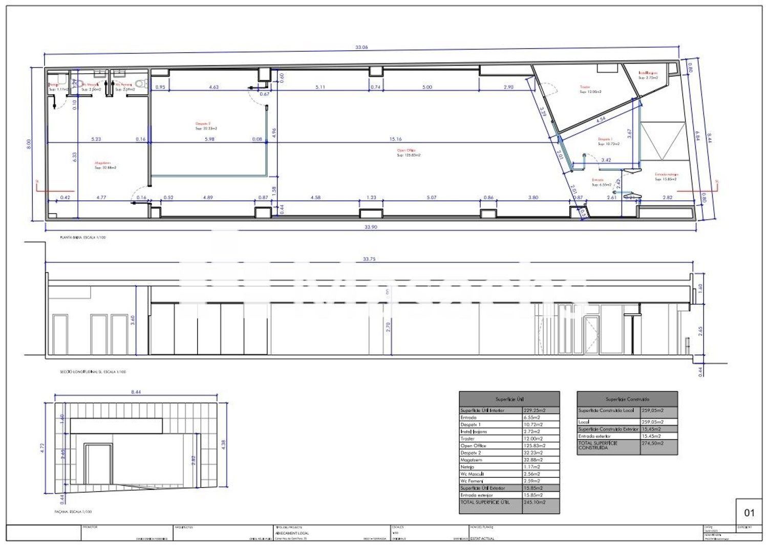 Local apto para convertirla en vivienda con tres alturas o para instalar una oficina o comercio en el centro de Terrassa. Local en venta de 254,10 m² con dos despachos con divisiones de vidrio, un almacén y dos aseos. Sin vecinos en piso superior y el local debe acondicionarse y reformarse y dispone de persiana exterior. Cuenta con los suministros de luz y agua dados de alta y aire acondicionado (la instalación debe revisarse y actualizarse).