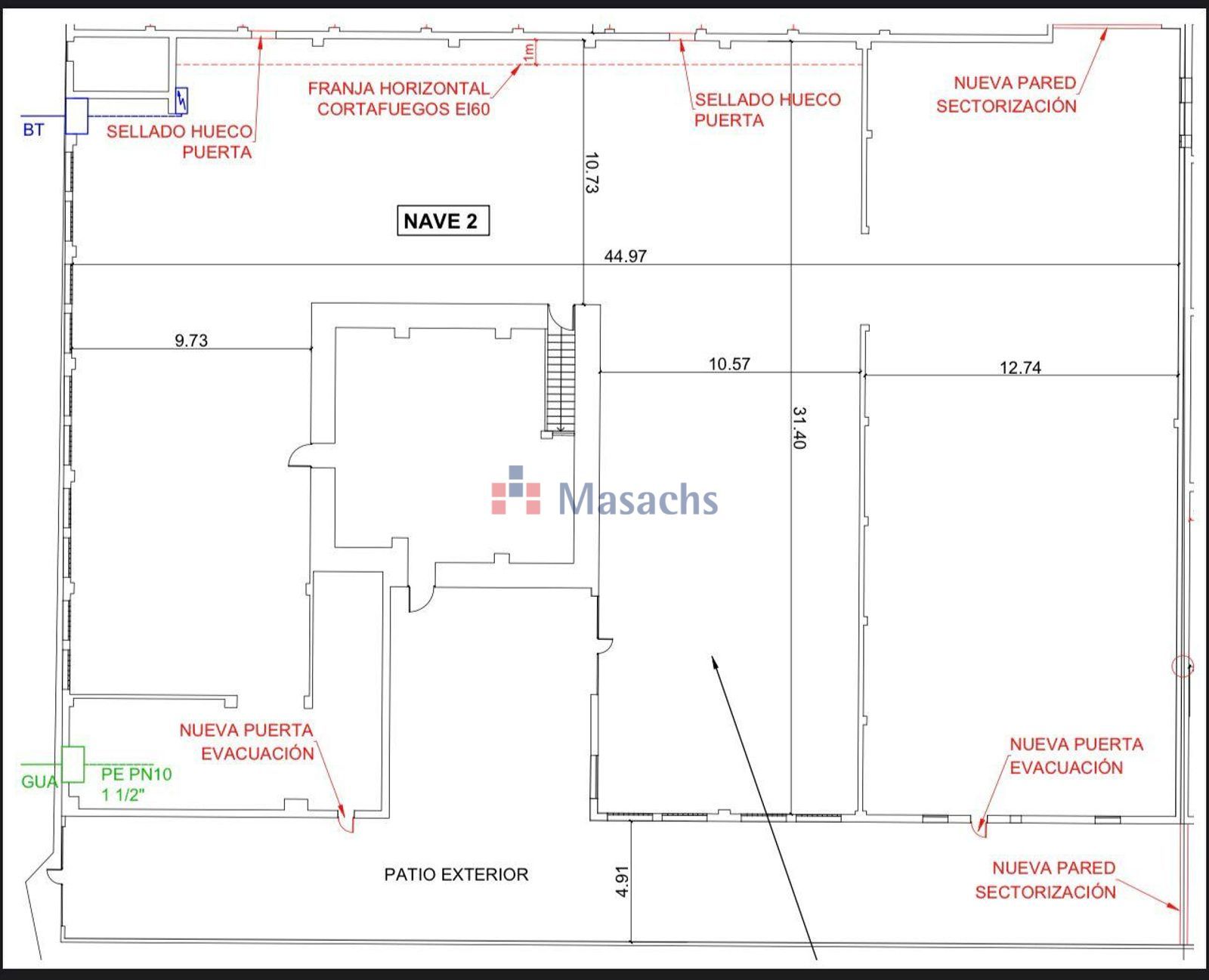 • Acceso: Acceso para camiones (no para tráileres). Puerta de 4,15 m de ancho x 4 m de altura.