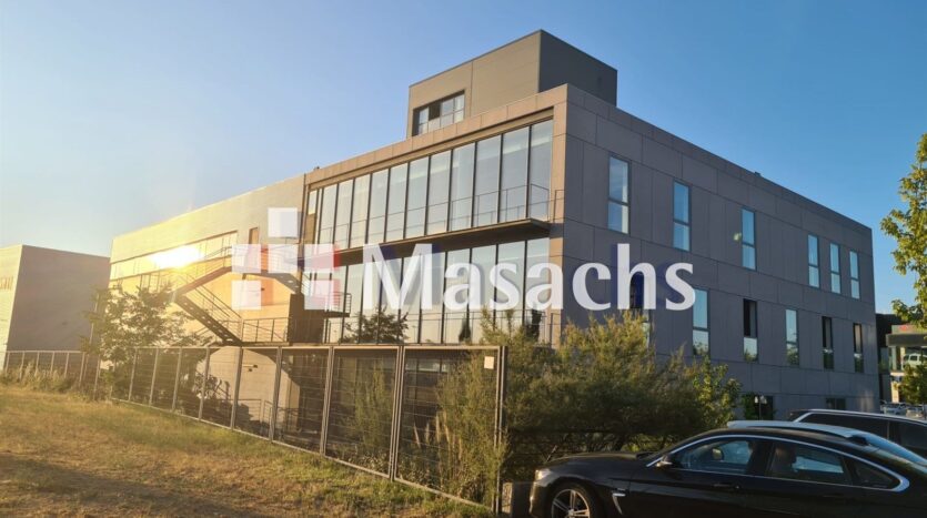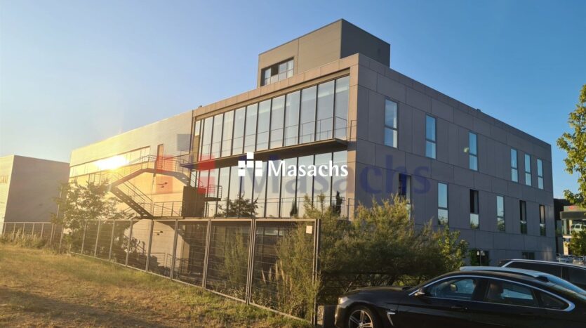 Nave industrial en venta y alquiler en Leganés. El edificio tiene una superficie total de 2600 m2, distribuidos en una nave de 750 m2 y 10 m de altura, una oficina de 1.400 m2 y un sótano de 436 m2.