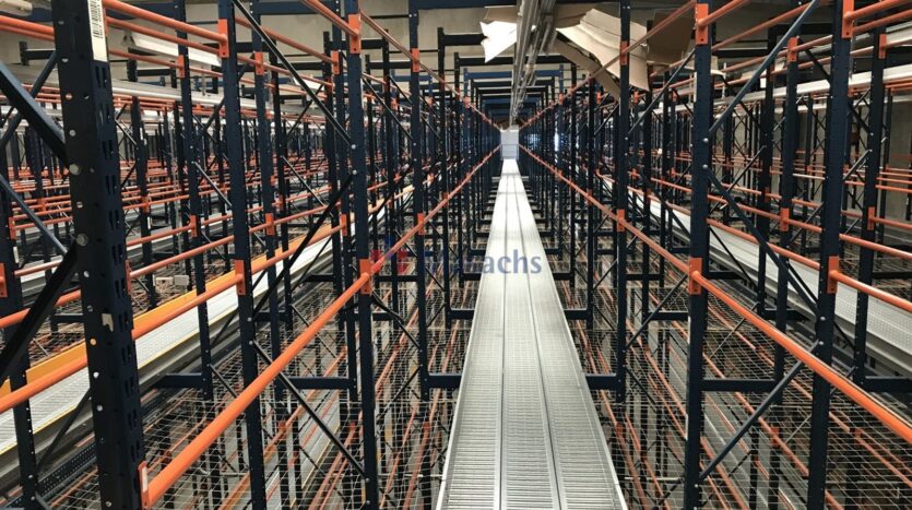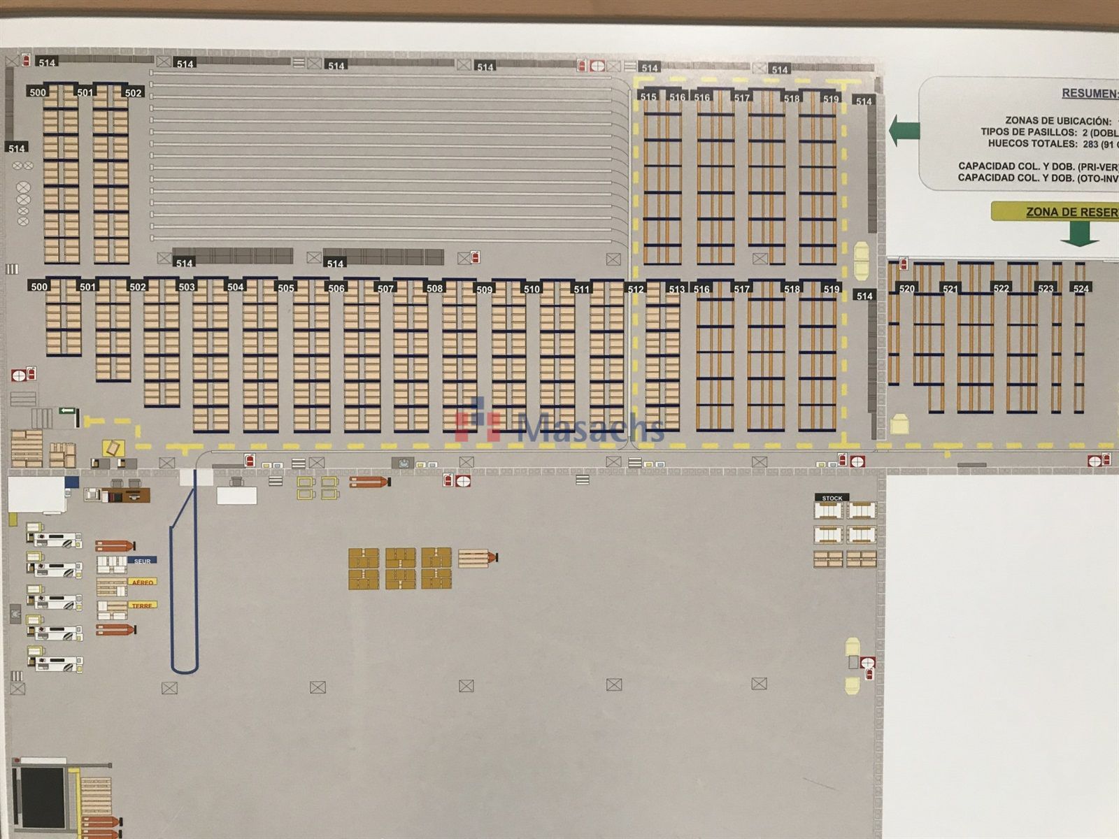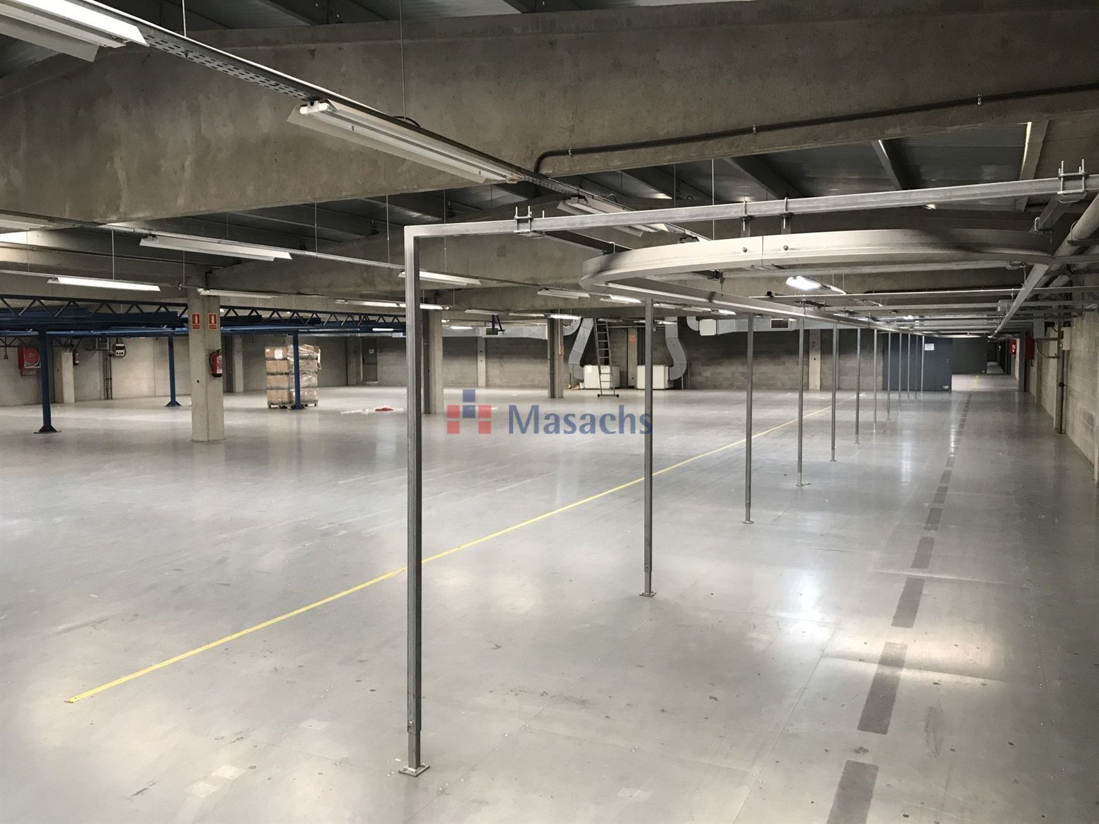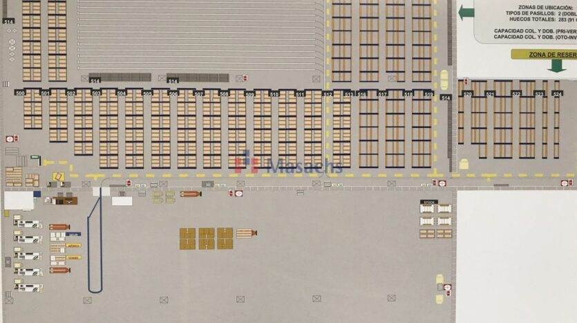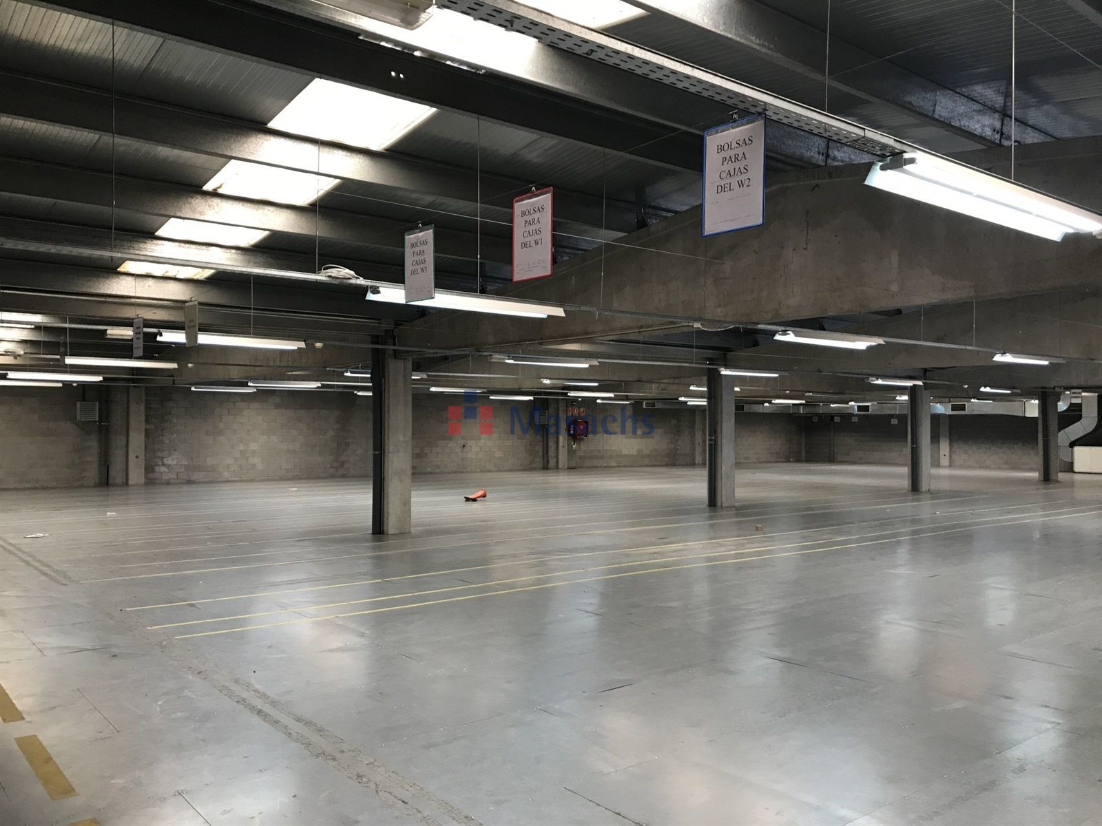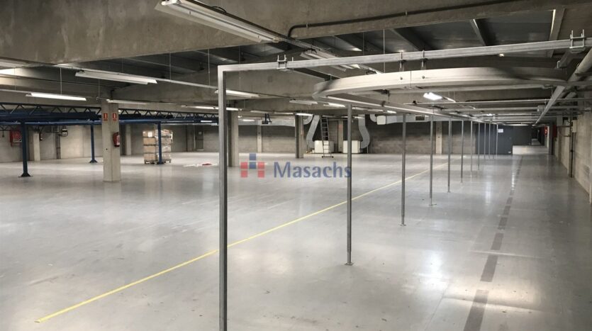 una planta baja de 9.855 m² con una altura útil de 8 metros y 1.706 m² de altillo de obra, una primera planta de 9.855 m² y una segunda planta de 4.669 m². Dispone de 9.338 m² equipados con estanterías, de un muelle de carga y descarga, de 12 puertas TIR y de puertas para peatones independientes. Tiene todas las instalaciones y los servicios de agua y luz dados de alta. La estructura de cerramientos es de hormigón y la cubierta es de tipo sanwich. Dispone de las medidas antiincendios: alarmas, muros cortafuegos, B.I.E.S, pulsadores y extintores. También dispone de oficinas, vestuarios y baños. Nave ideal para utilizar como almacén y para empresas de «picking». La fachada mujer de cara a la C-17 a 7 km de Barcelona.