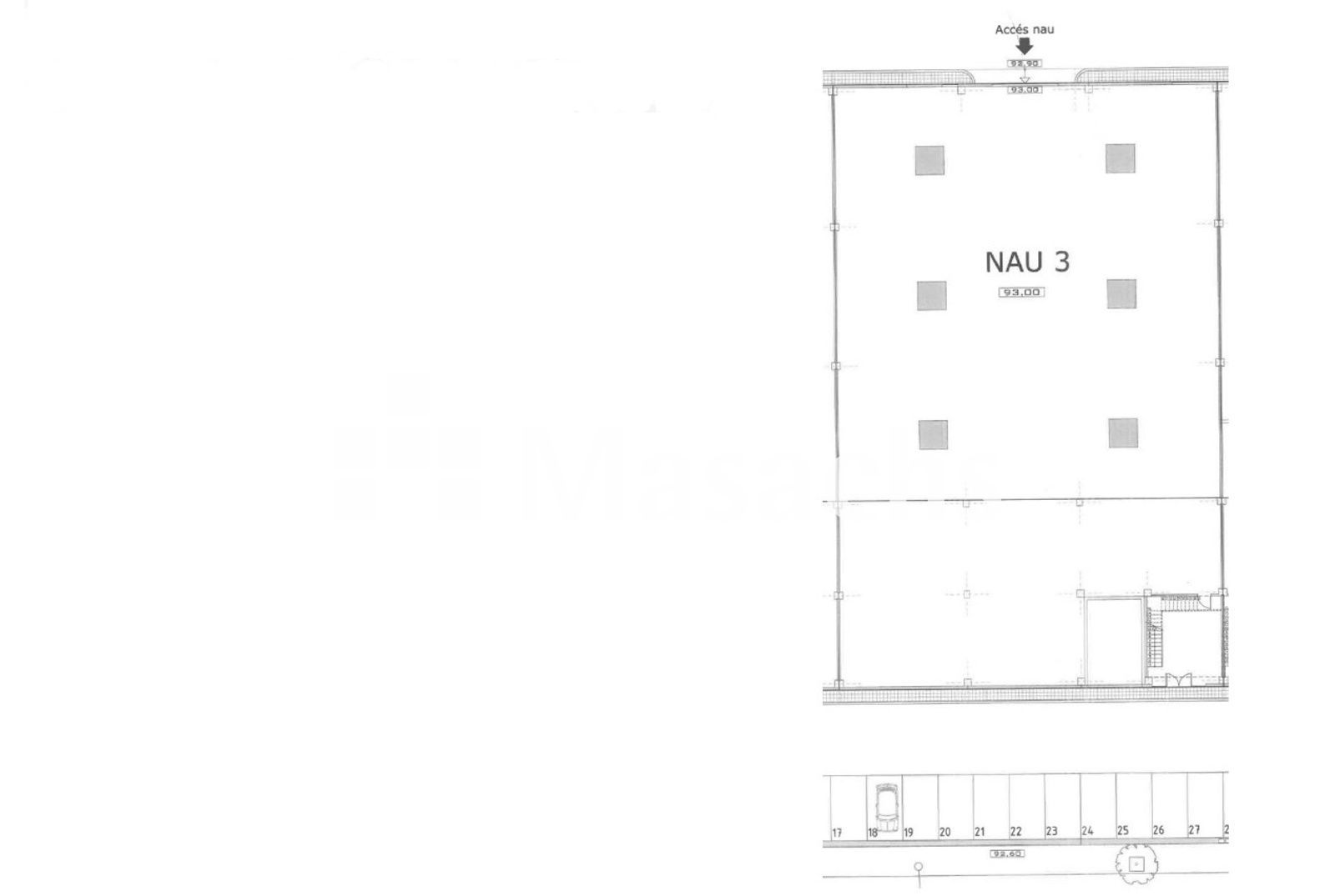 – Dimensiones: 27 m de ancho x 29,20 m de fondo + 13 m bajo altillo.