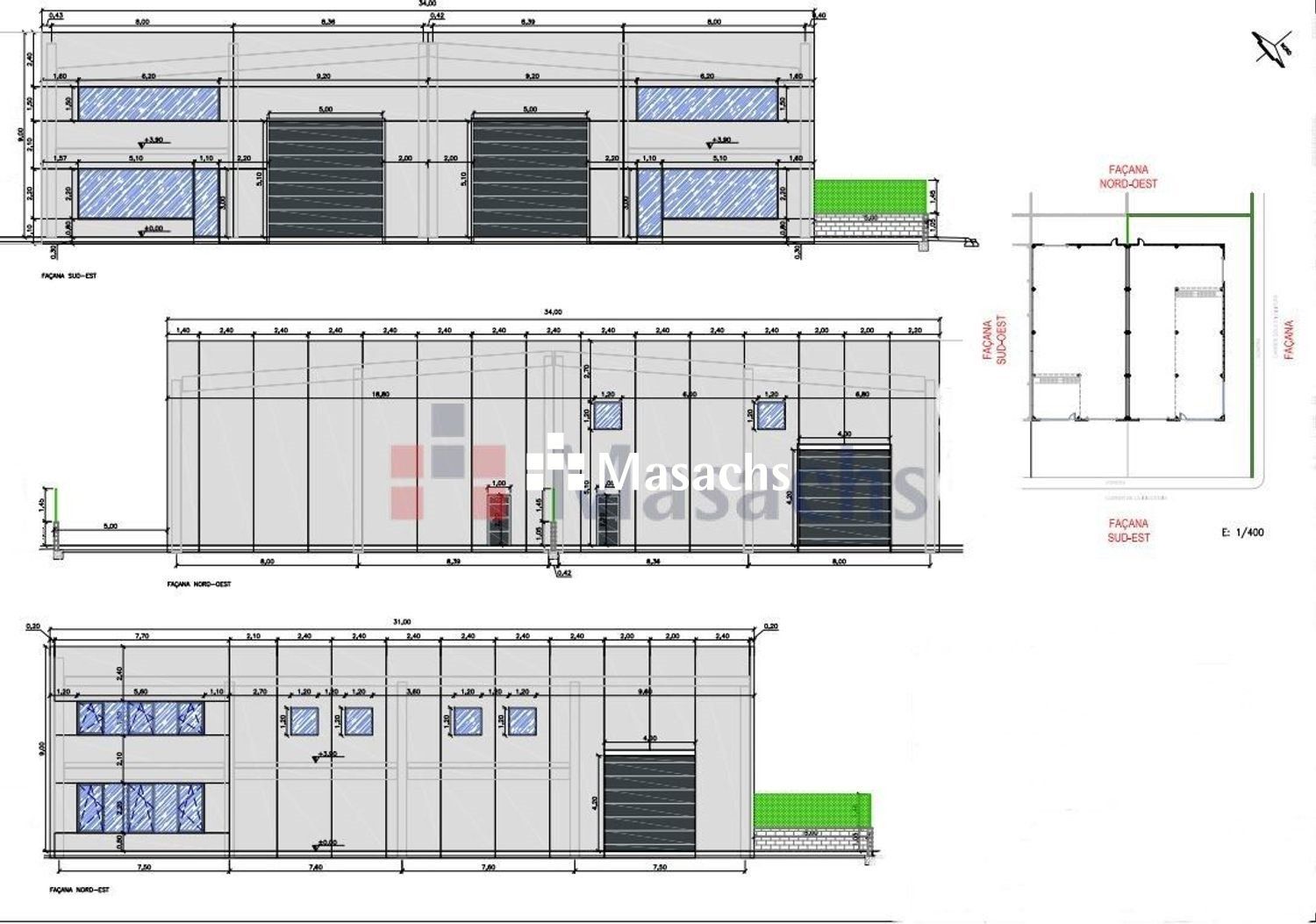 – 1 puerta de vehículos (5 m ancho x 5,10 m alto).