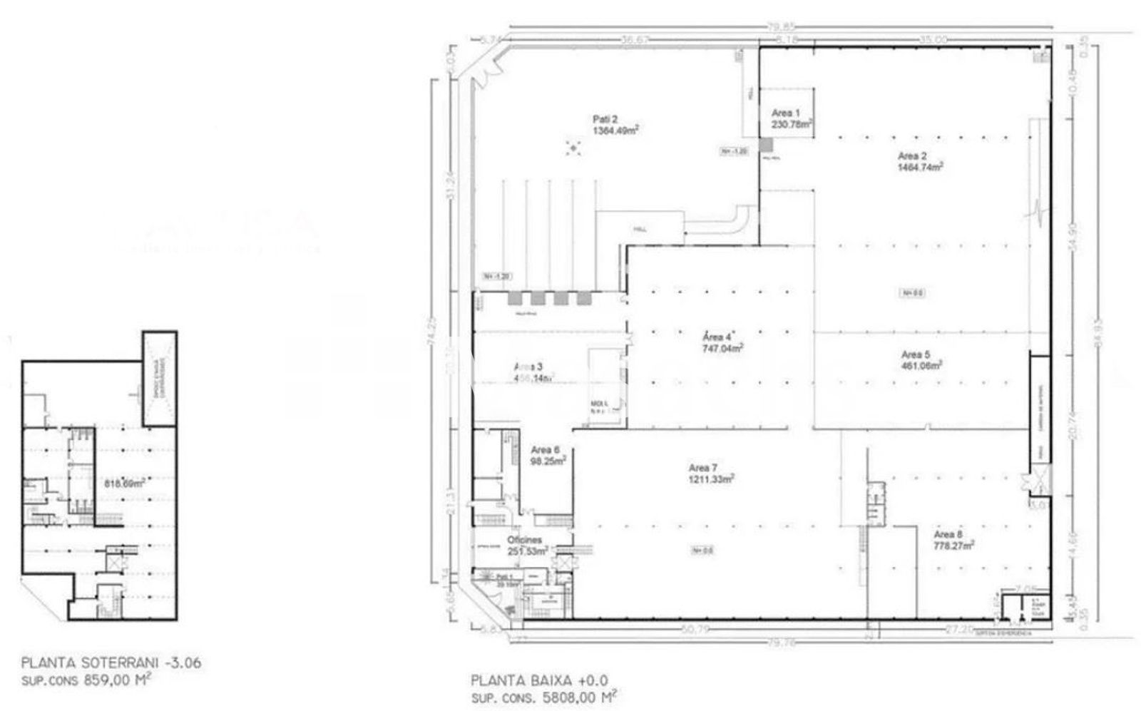 • Planta sótano: 859 m².