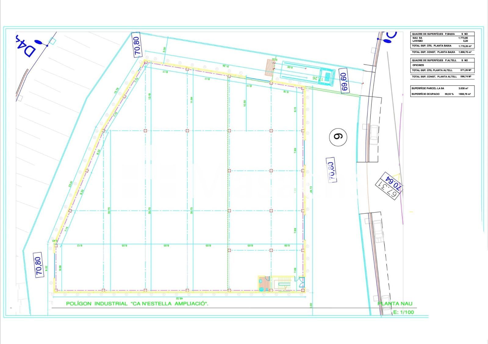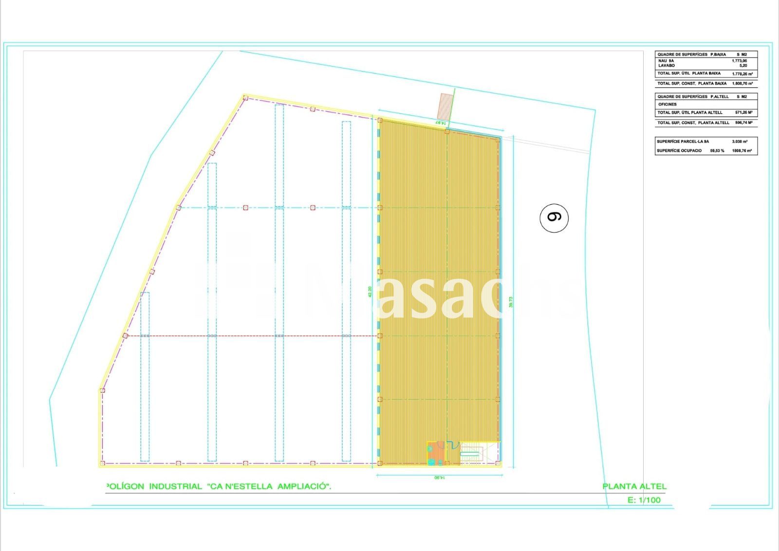 • Oficinas (1ª planta): 596,74 m².