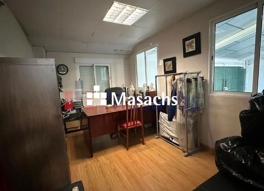 Dispone de un portón de 5 metros de alto x 4,5 metros de ancho para el acceso de vehículos, de una perqueña oficina de 12 m², ducha y aseos .