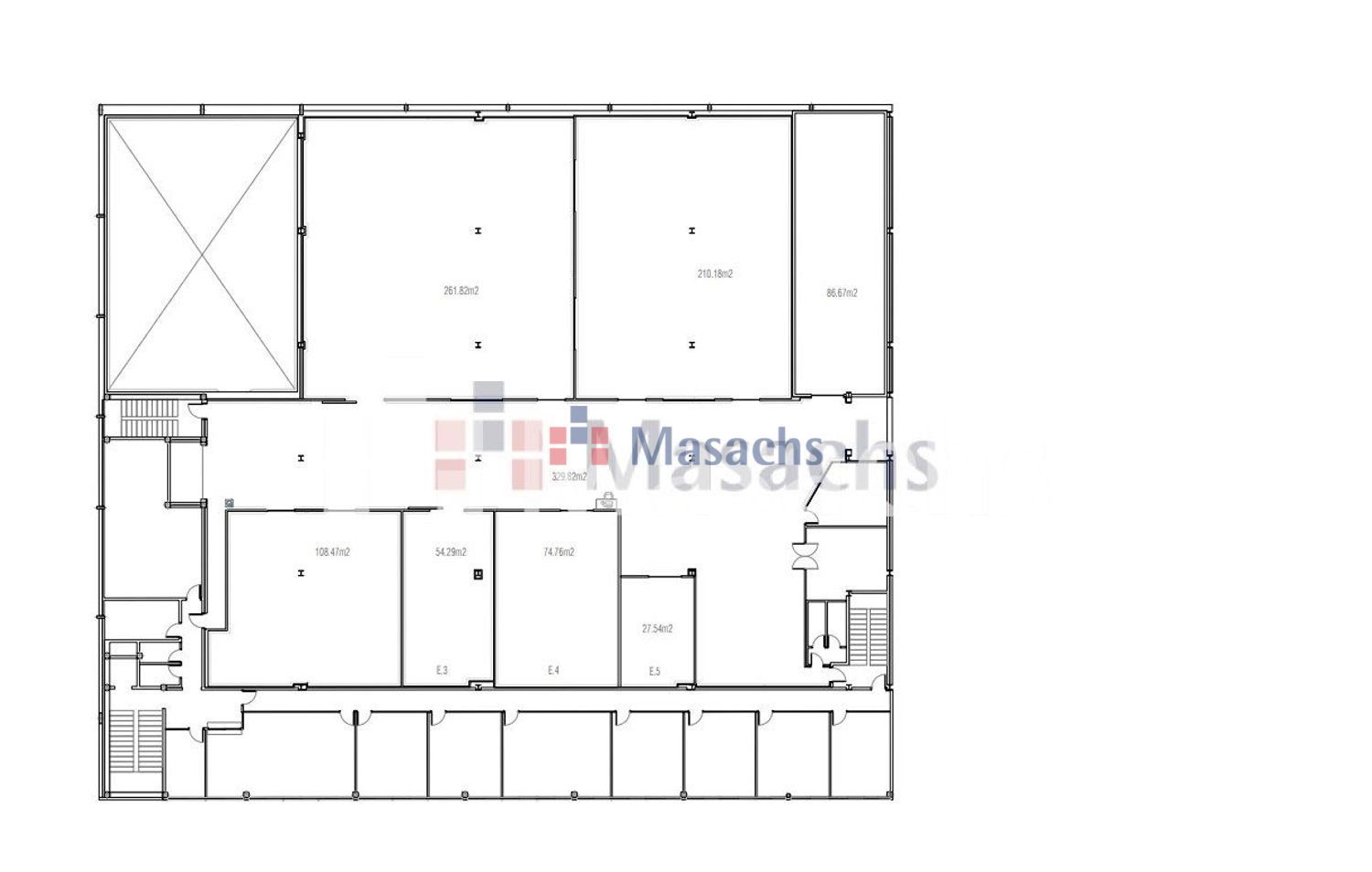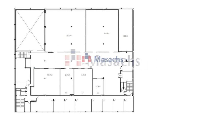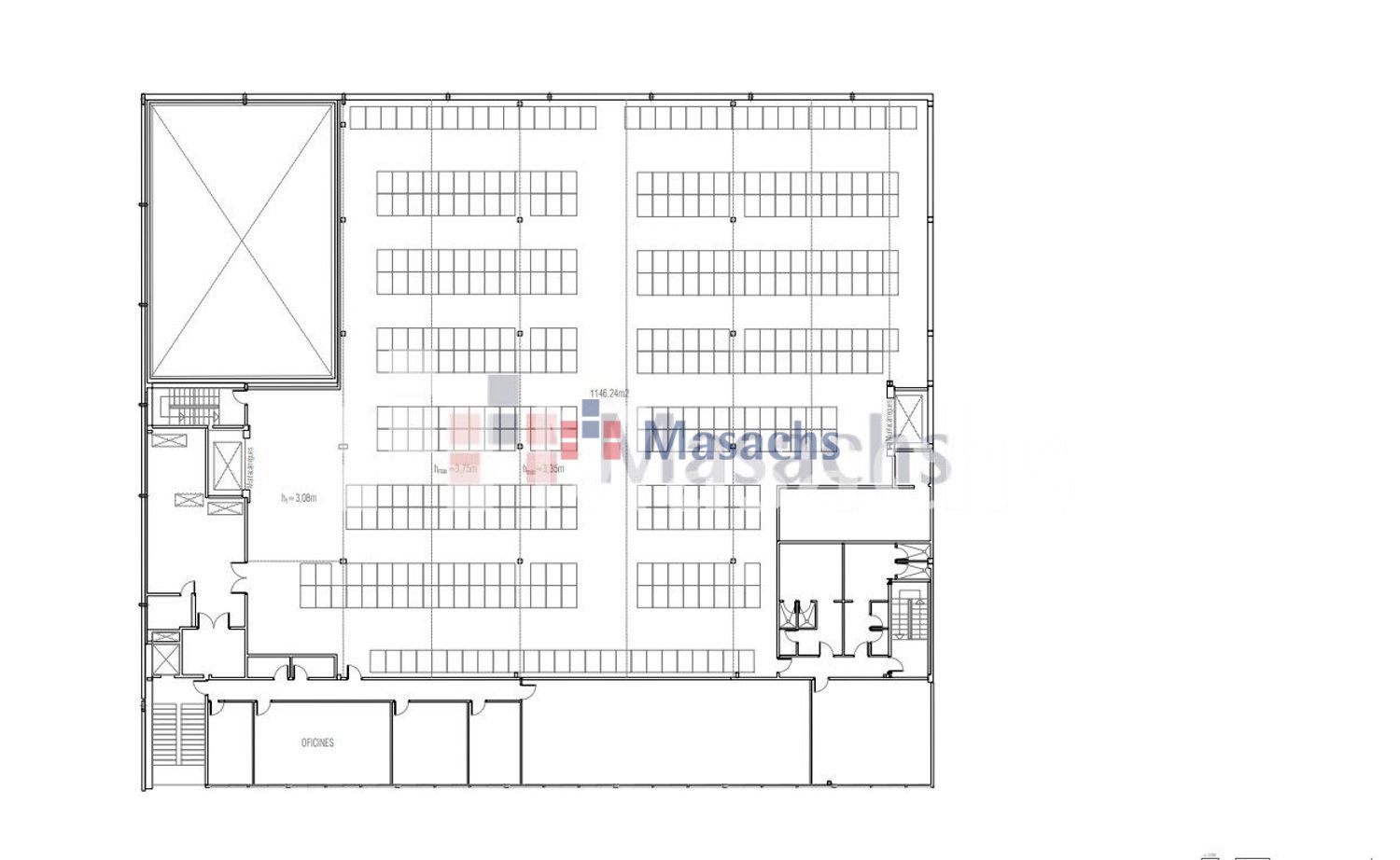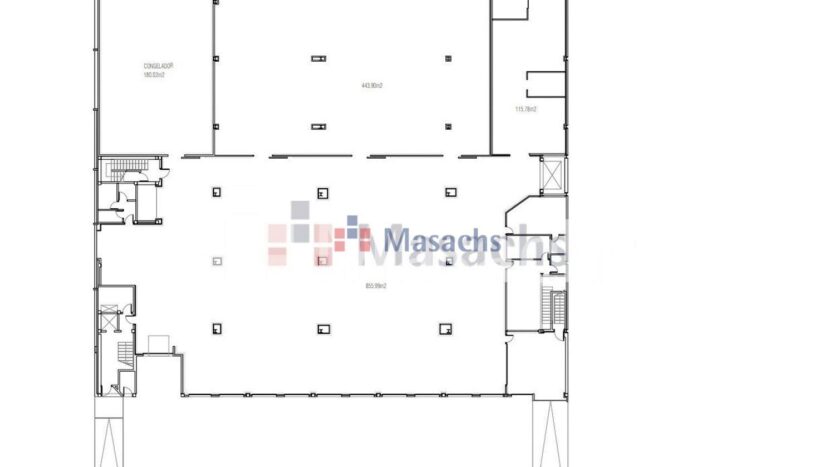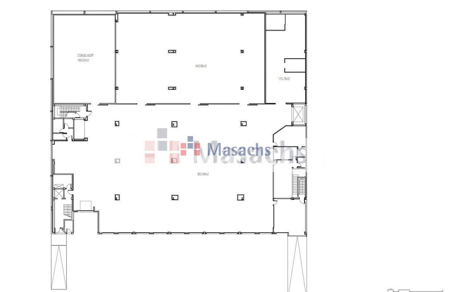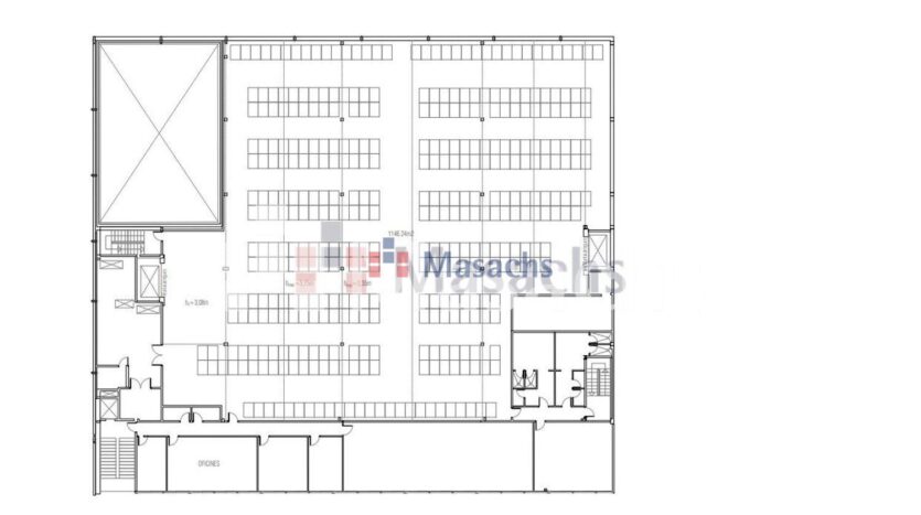 • Planta baja: 1.594 m² con una altura libre de 4 metros. La superficie total de almacén: 3.800 m².