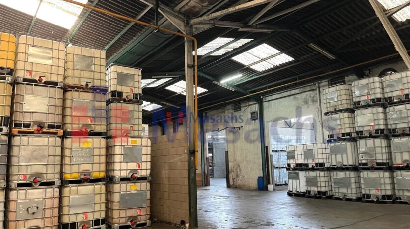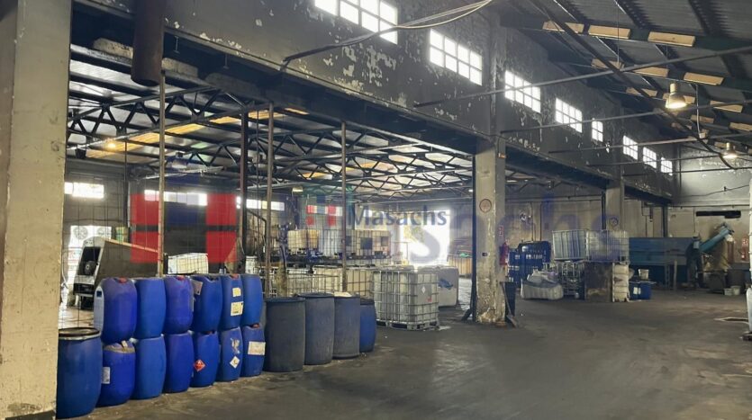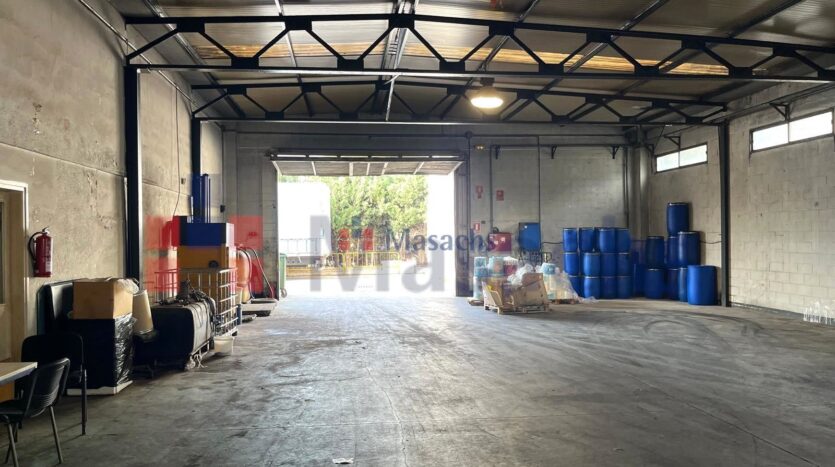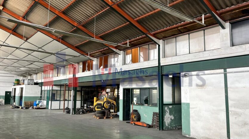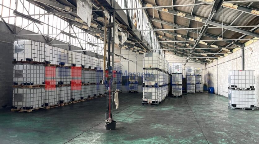 La estructura metálica con cubierta de fibrocemento y pavimentos de hormigón garantiza durabilidad, mientras que el falso techo y las amplias ventanas ofrecen un espacio de trabajo luminoso y eficiente. Además, cuenta con dos puertas TIR para el acceso de vehículos industriales, junto con aseos y vestuarios completamente equipados.