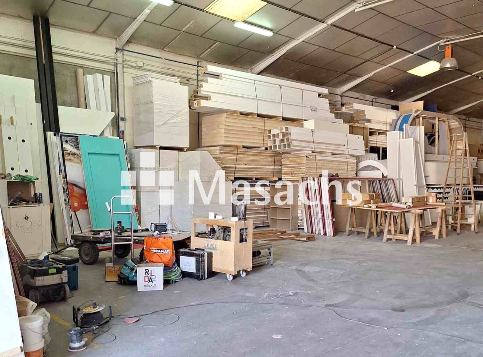 La nave es perfecta para actividades de almacenaje, producción ligera o distribución industrial, con posibilidad de venta junto con un negocio de diseño y montaje de stands para ferias y congresos.