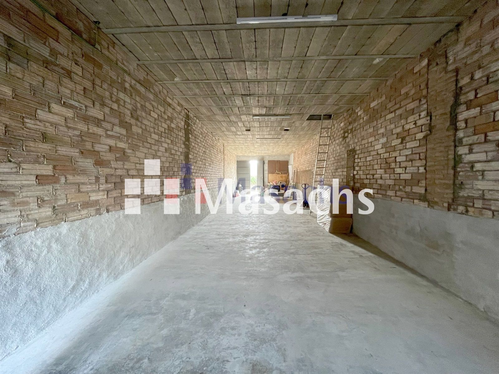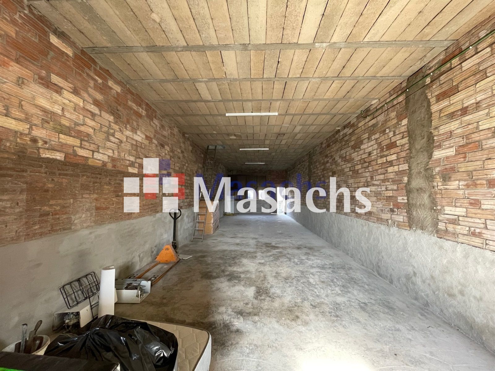 El primer bloque con fachada a la calle trasera tiene 93 m² y una altura de 3,5 metros. Además dispone de un altillo de 2 metros de alto. La nave tiene acceso hasta la puerta para vehículos.