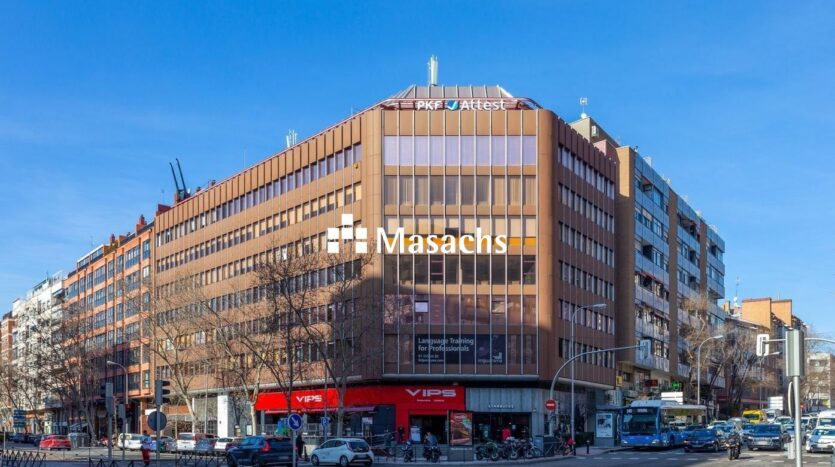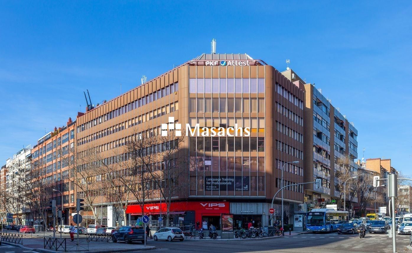 Oficinas en alquiler en un edificio de uso exclusivo de oficinas junto a la zona de Azca, centro financiero de Madrid.