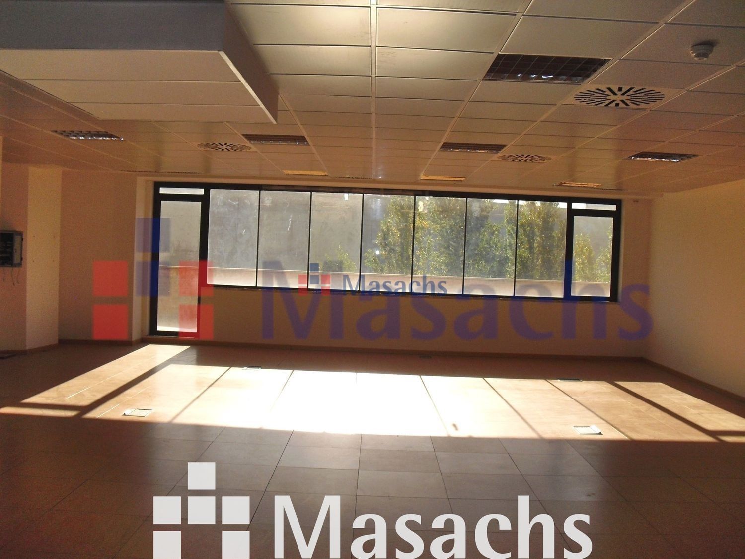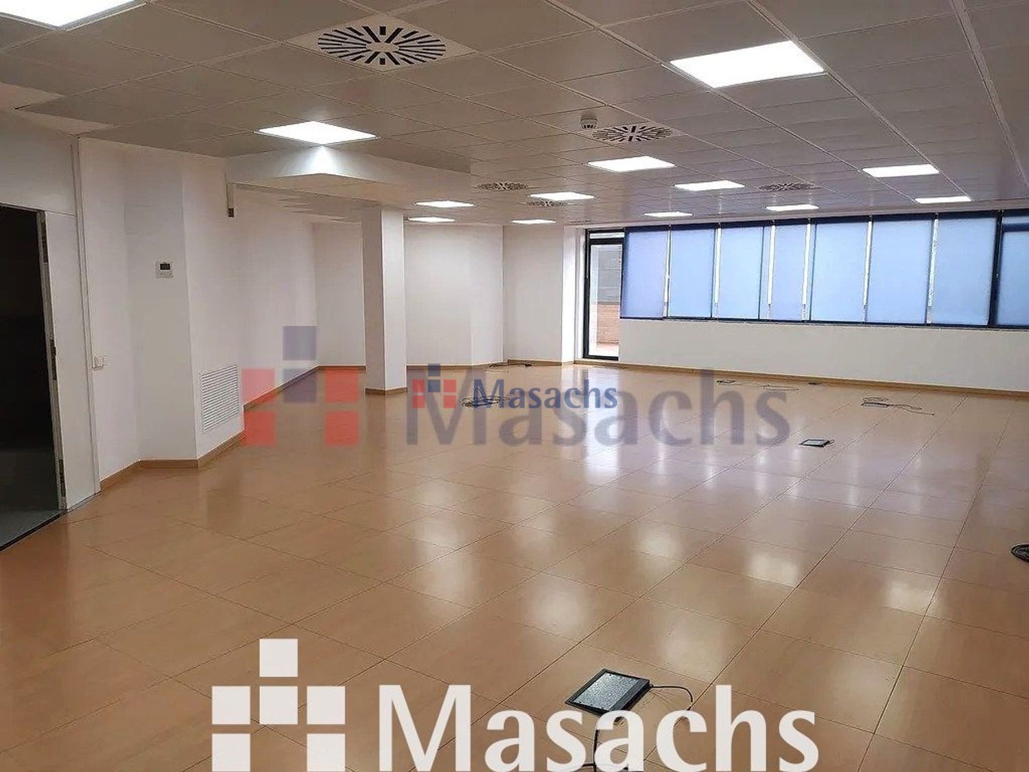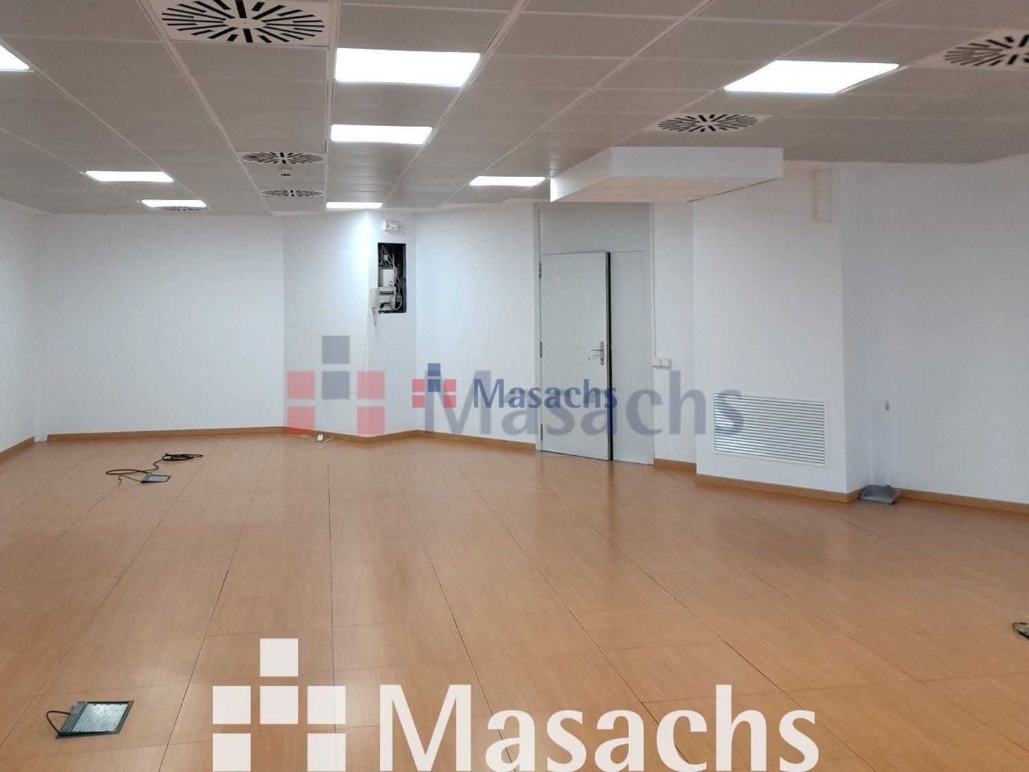 – Instalaciones: Suelo técnico con base de sulfato y acabado imitación parquet. Techo registrable metálico lacado en blanco y microperforado. Detector de humos. Instalación eléctrica, telefónica, fibra óptica e iluminación.